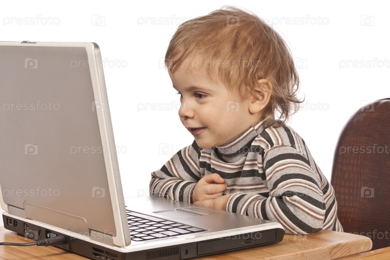 Маленький мальчик перед ноутбуком