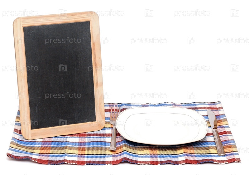 Меню с пустой тарелкой на красочной салфетке