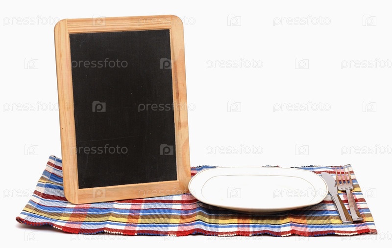 Меню с пустой тарелкой на красочной салфетке