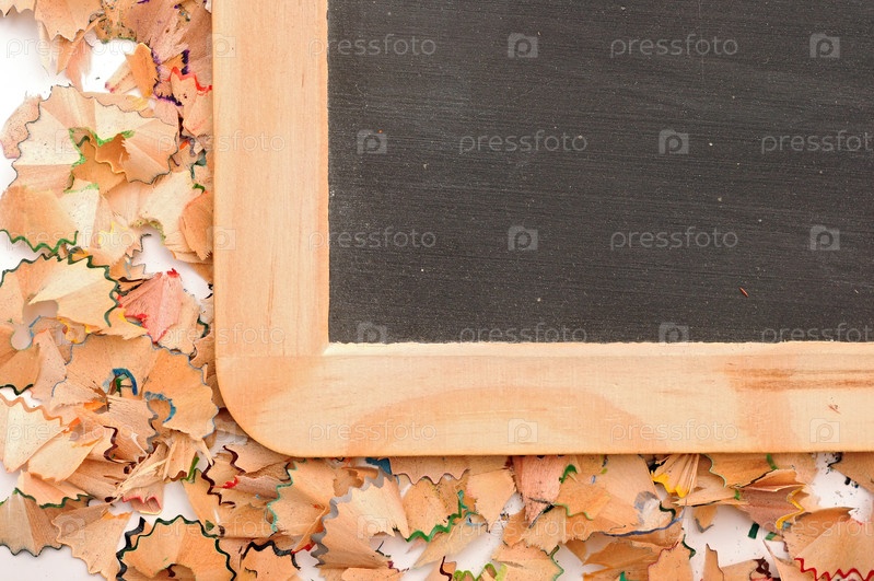 Пустая школьная доска на цветной стружке