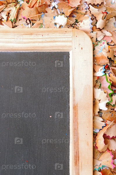 Пустая школьная доска на цветной стружке