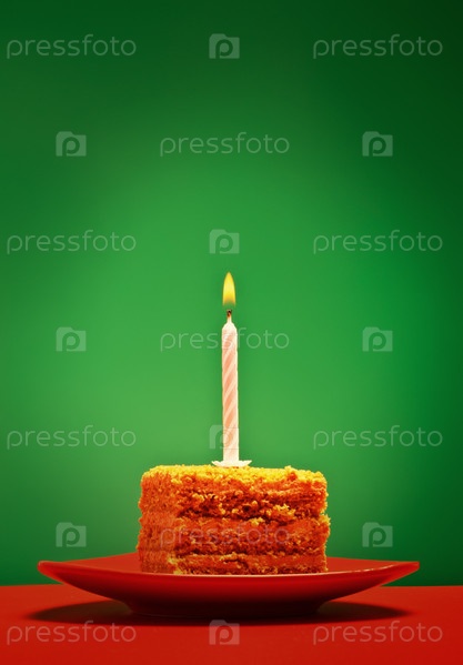 Кусок именинного торта со свечой