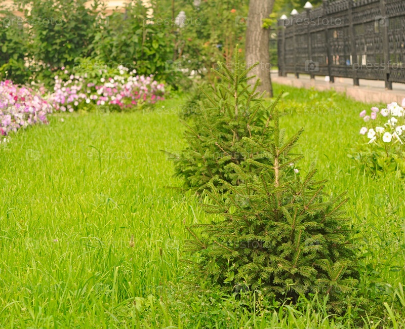 Небольшая елка на траве