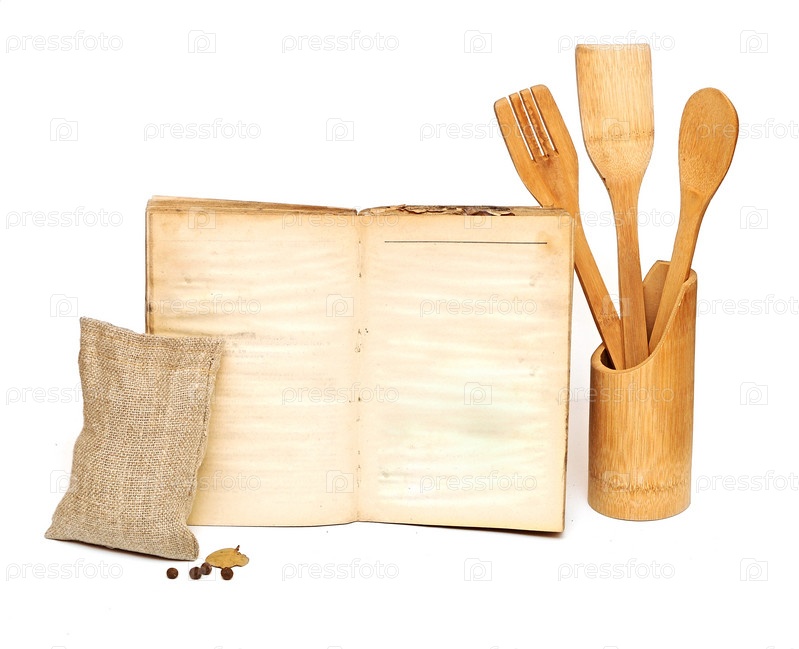 Деревянные кухонные принадлежности на белом фоне