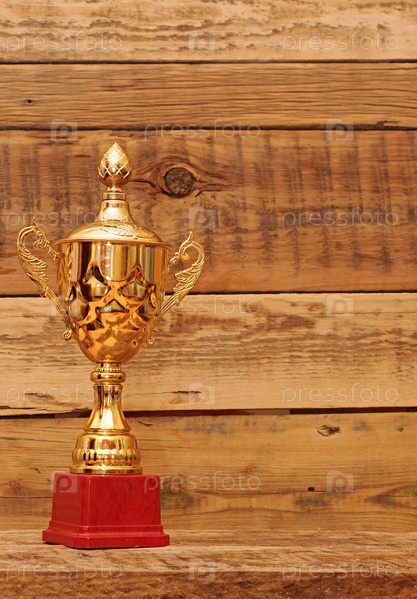 Золотой трофей на фоне дерева
