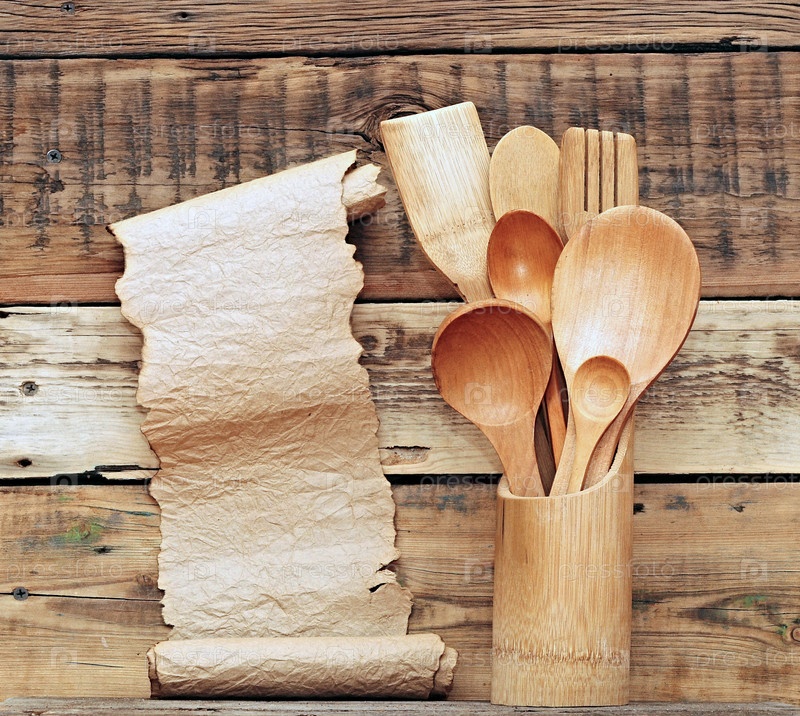 Кухонная посуда в стиле ретро и бумага