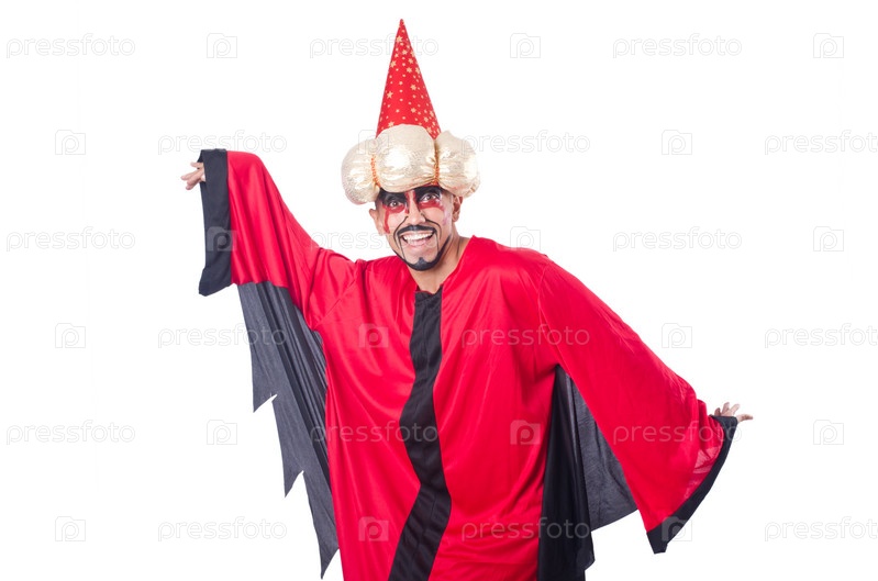 Волшебник в красном костюме, изолированный на белом фоне