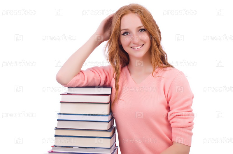 Молодая студентка на белом фоне
