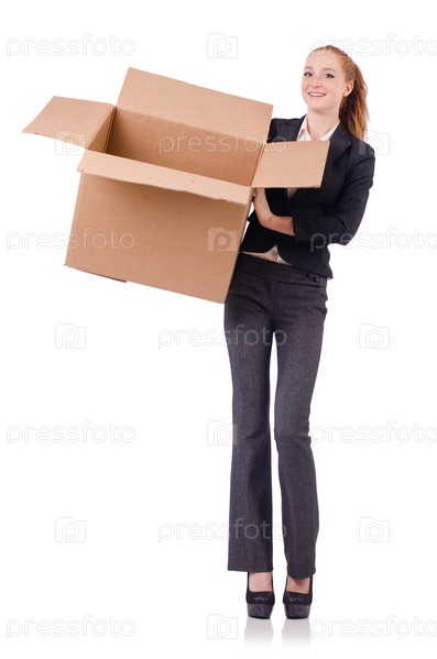 Бизнес-леди с коробками на белом фоне