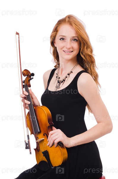 Женщина со скрипкой, изолированная на белом