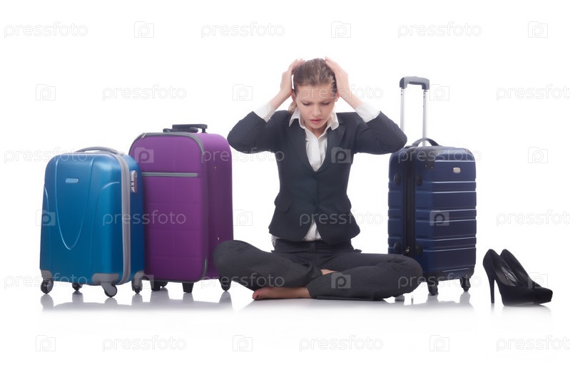 Деловая женщина в командировке, изолированная на белом