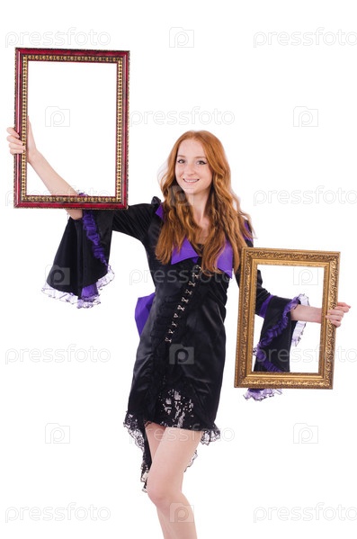 Женщина с рамками на белом фоне