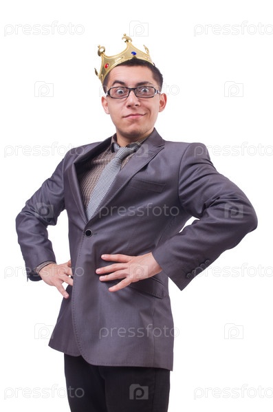 Бизнесмен в короне, изолированный на белом