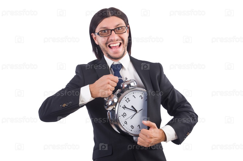Бизнесмен с часами, изолированный на белом