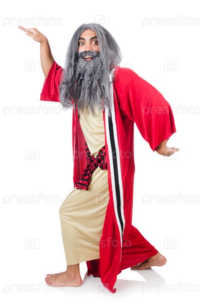 Фокусникв костюме, изолированный на белом