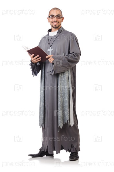 Молодой священник, изолированный на белом