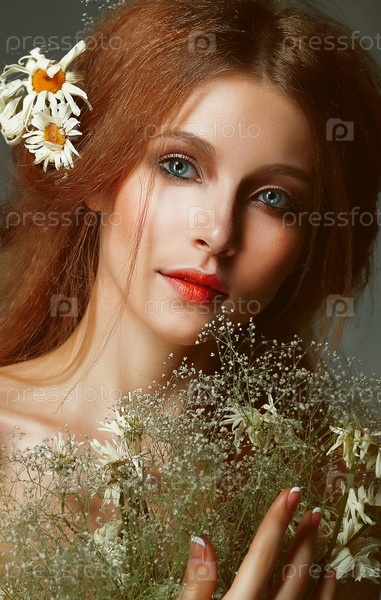 Чистая красота. девушка держит букет полевых цветов. Нежность