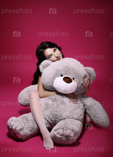 Мечтательность. Сентиментальная девушка с мягкой игрушкой