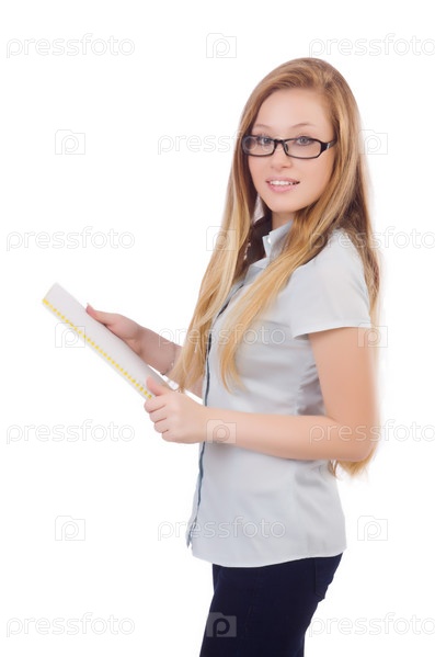 Молодой студент с книгами на белом фоне