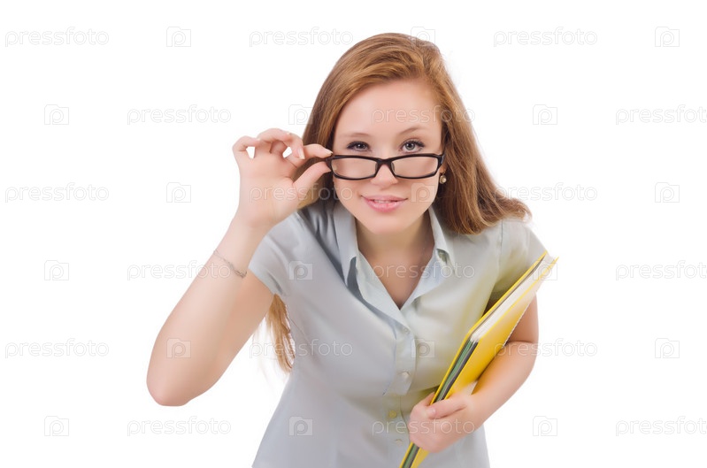 Молодой студент с книгами на белом фоне