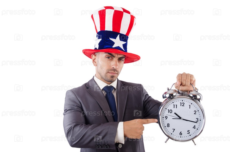 Бизнесмен с часами, изолированный на белом