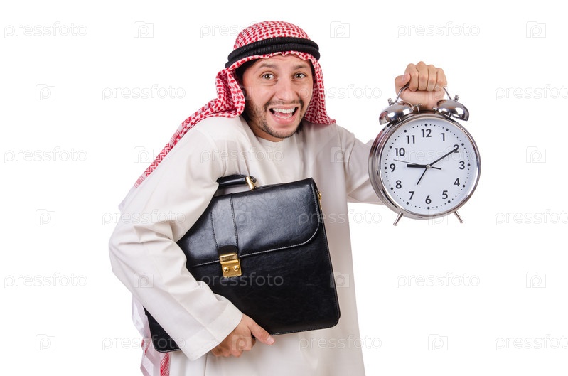 Араб в концепции времени на белом фоне