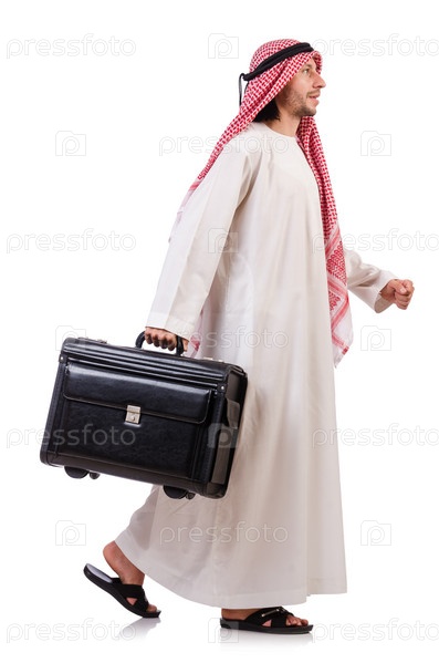 Араб с багажом на белом фоне