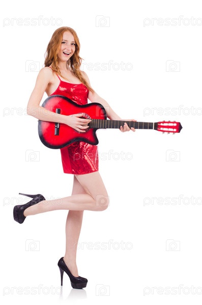 Гитаристка, изолированная на белом фоне