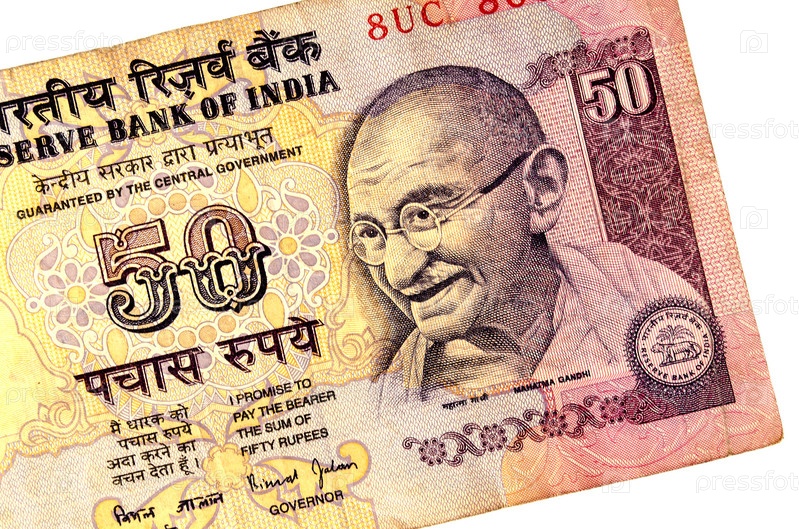 Ганди на купюре 50 рупий из Индии