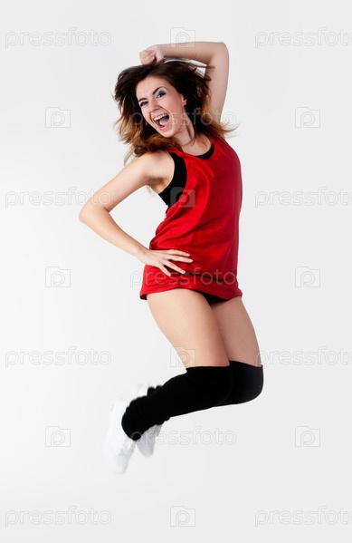 Молодая счастливая женщина прыгает
