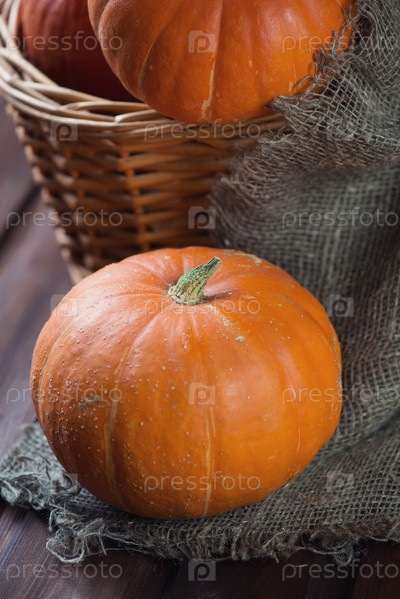 Корзина со спелыми тыквами, крупный план