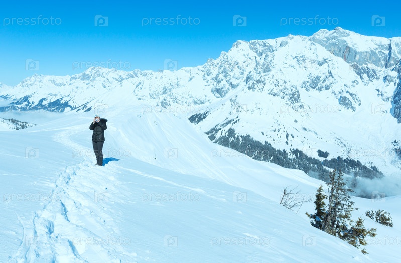 Женщина на вершине горы зимой