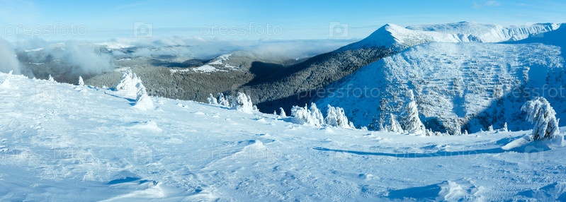 Зимняя горная панорама с заснеженными деревьями (Карпаты, Украина)