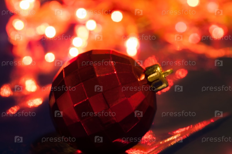 Красный шар на фоне рождественских огней