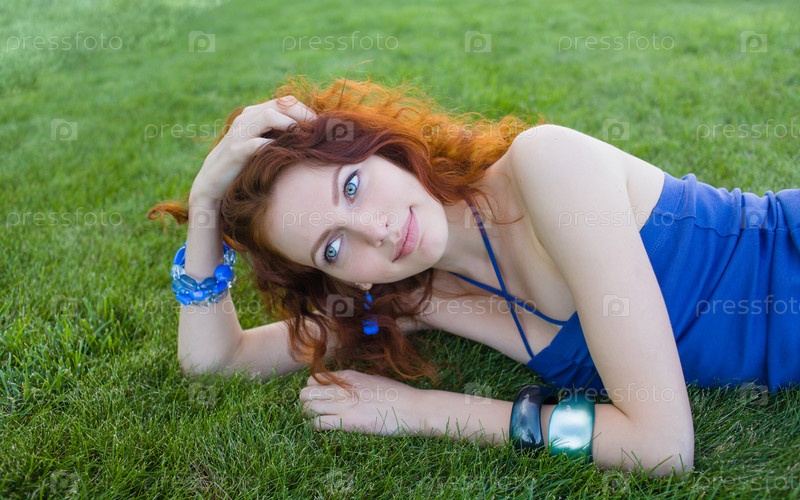 Рыжая женщина на траве