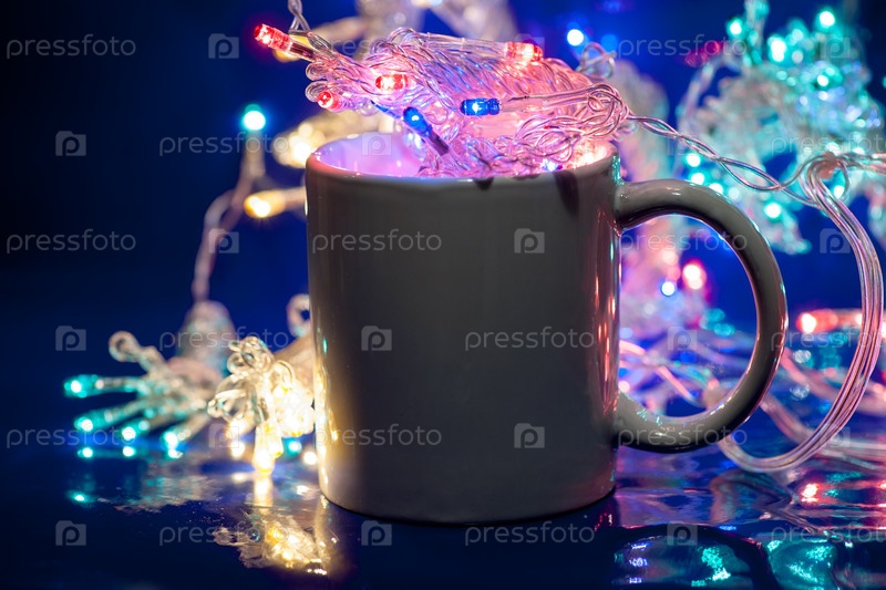 Чашка чая и рождественский венок