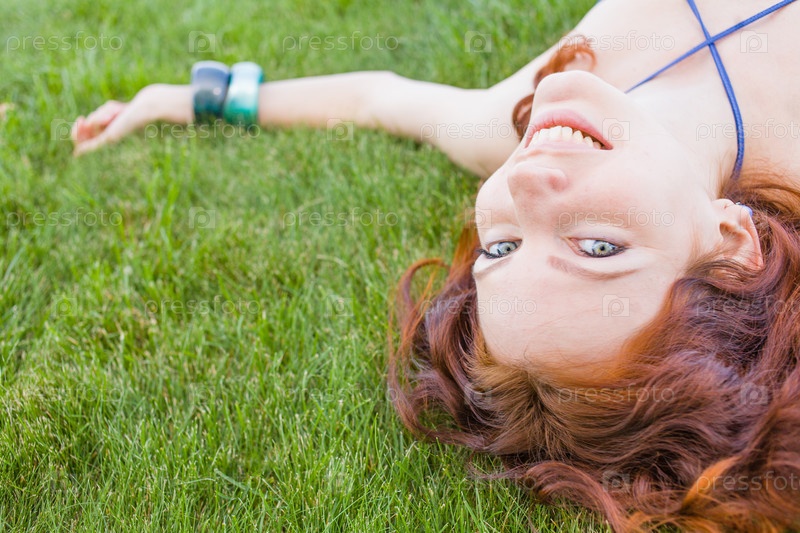 Рыжая женщина на траве