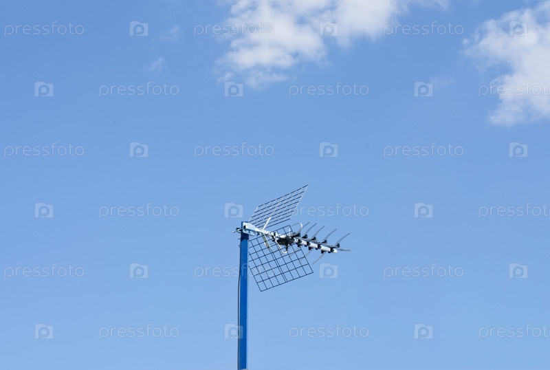 Телевизионная антенна на фоне голубого неба
