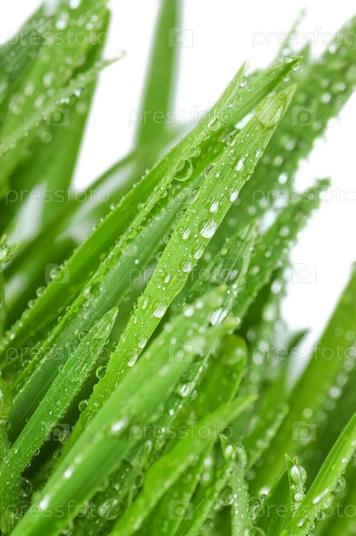 Свежая зеленая трава в каплях росы