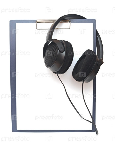 Черные наушники и планшет крупным планом