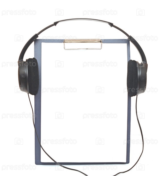 Черные наушники и пустой планшет крупным планом