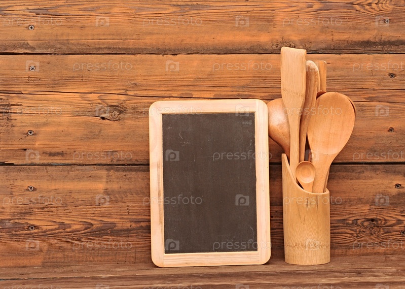 Чистая доска и посуда на древесине