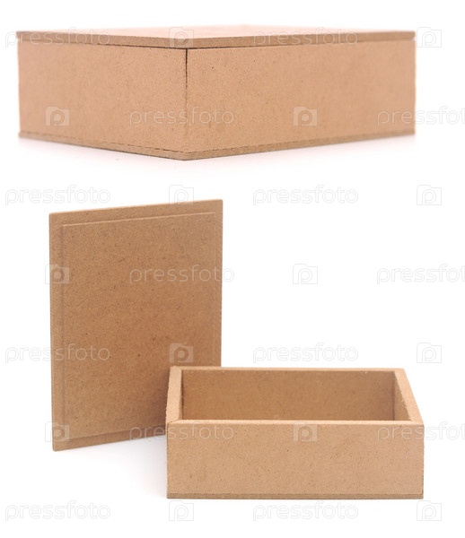 Открытая небольшая картонная коробка, изолированная на белом фоне