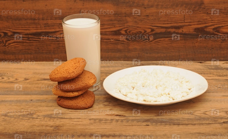 Завтрак. Стакан молока и овсяное печенье