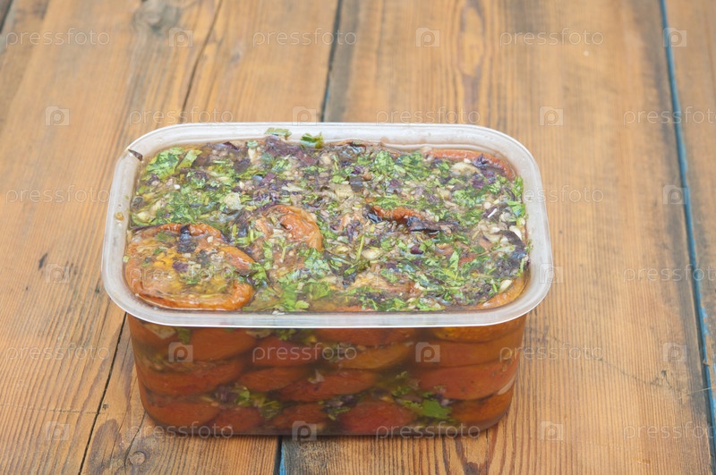 Сушеные помидоры с оливковым маслом на деревянном столе
