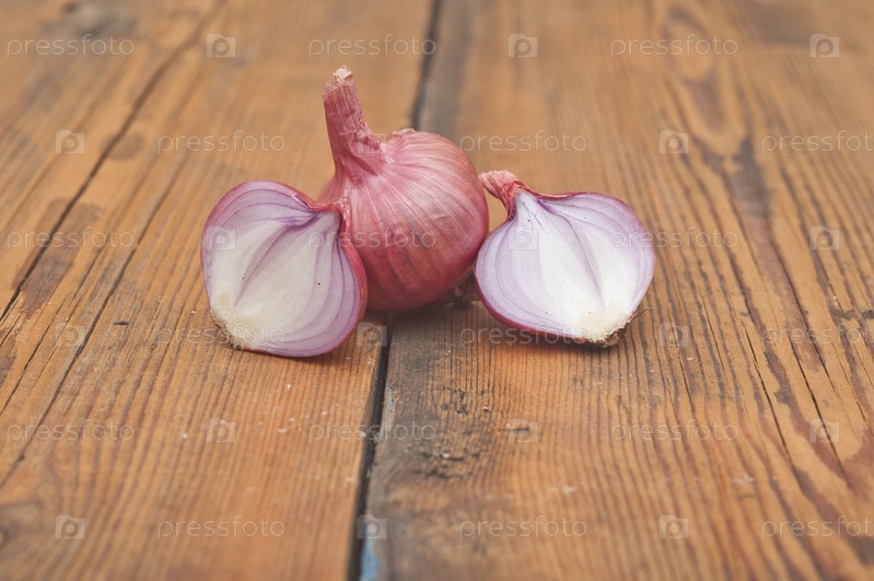 Красный нарезанный лук на деревянном столе