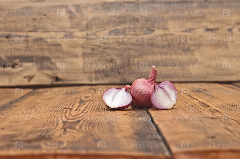 Красный нарезанный лук на деревянном столе
