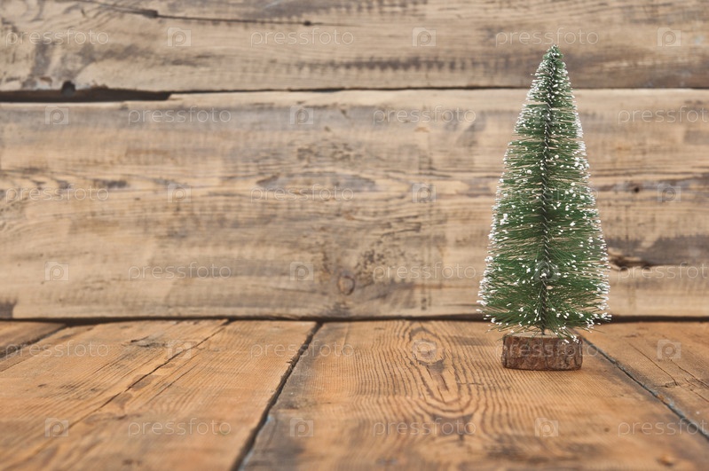 Маленькая новогодняя елка на деревянном столе
