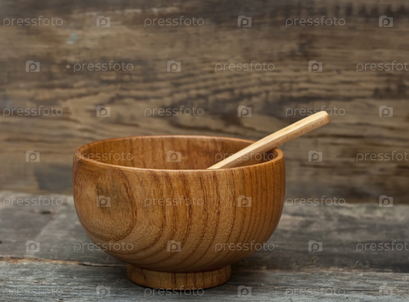 Деревянные тарелка с ложкой на старой древесине