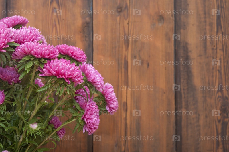 Букет розовых астр на древесине